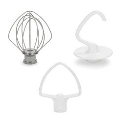 The possibilities are endless with this KitchenAid Stainless Steel Accessory Pack for 3.5-Qt Mini Artisan Stand Mixers! Quickly and easily transition through different mixes and ingredients with the Elliptical Whip, Flat Beater, and Dough Hook. Both the Flat Beater and Dough Hook have nylon-coated surfaces for easier food release and cleanup. This accessory pack is perfect for added efficiency as a second set of these most-used accessories for your 3.5-Qt Mini Artisan Stand Mixer.